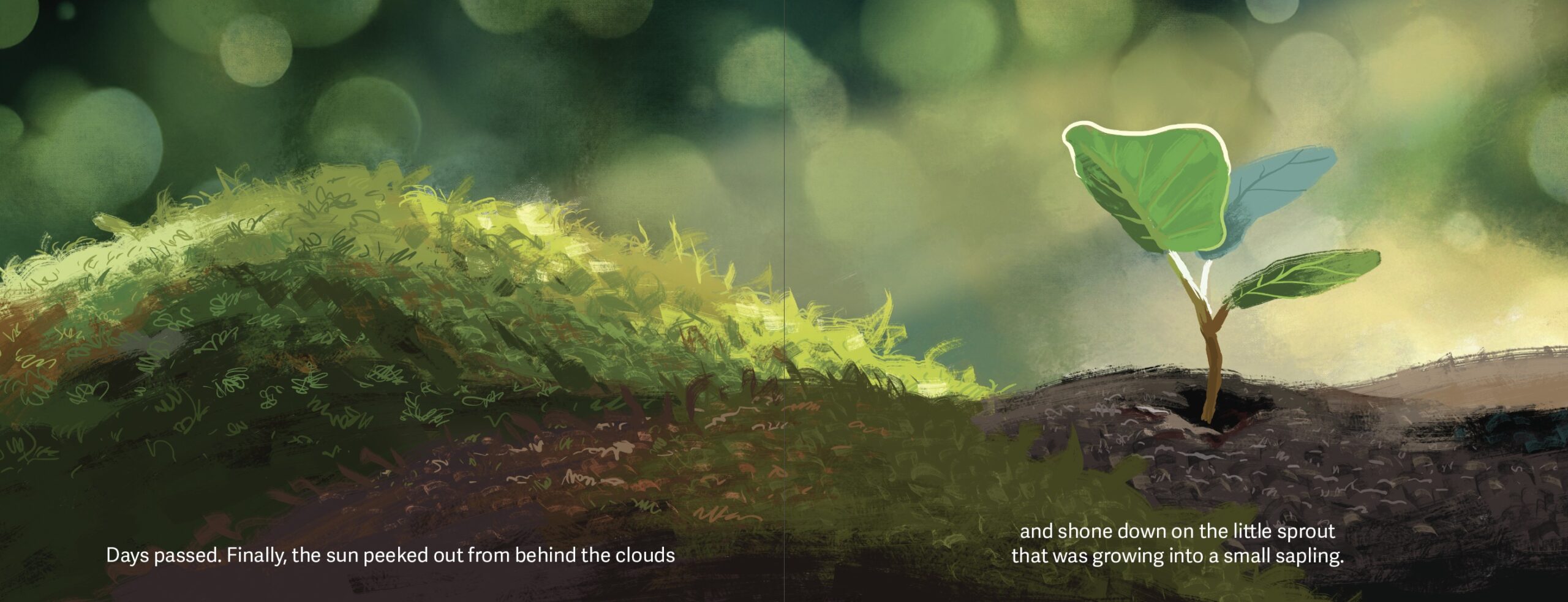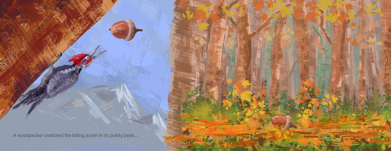 Throughout the story, we find ourselves “rooting” for the little acorn and hope that nature allows it to complete its journey and grow into a healthy, strong sapling.